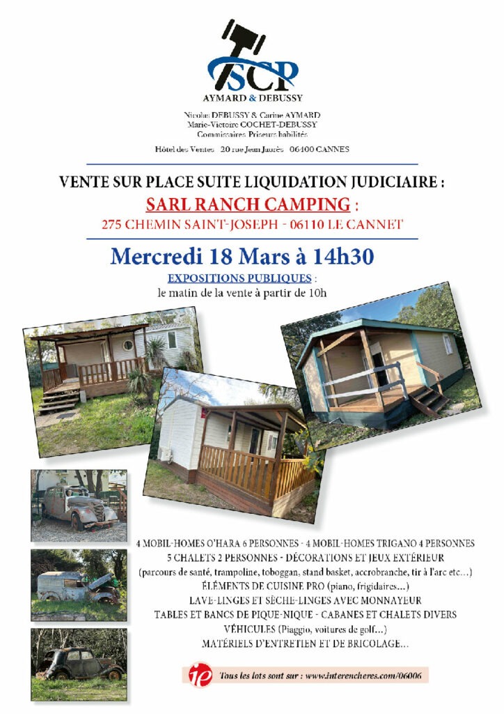 Vente sur place suite Liquidation judiciaire